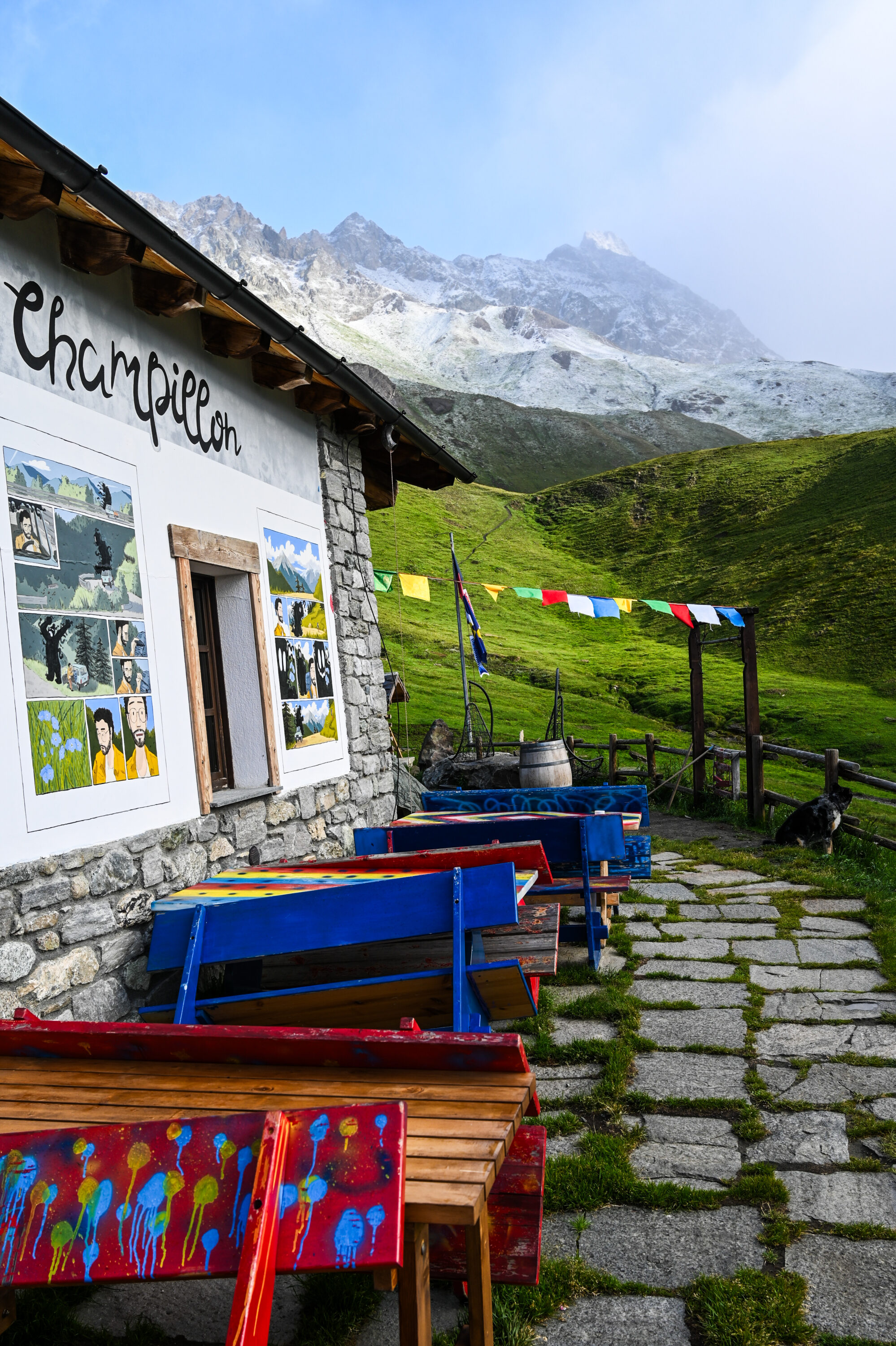 Along the way, we got a strong sense of the local mountain and shepherding culture, passing many still-active shepherd huts. This kind of walking is surprisingly refreshing, making the long day feel less grueling — as we could see from other hikers’ smiles along the trail. Refuge Champillon stands out as the most unique hut on the route, with its artsy design, country-bar vibe, and Marcello, who seems perfectly at home in this mountain world.