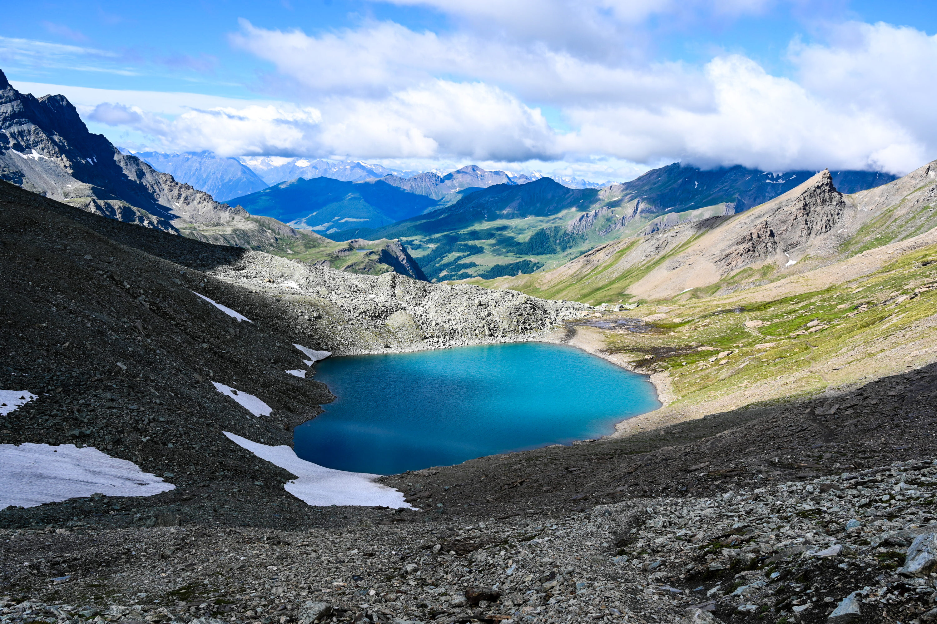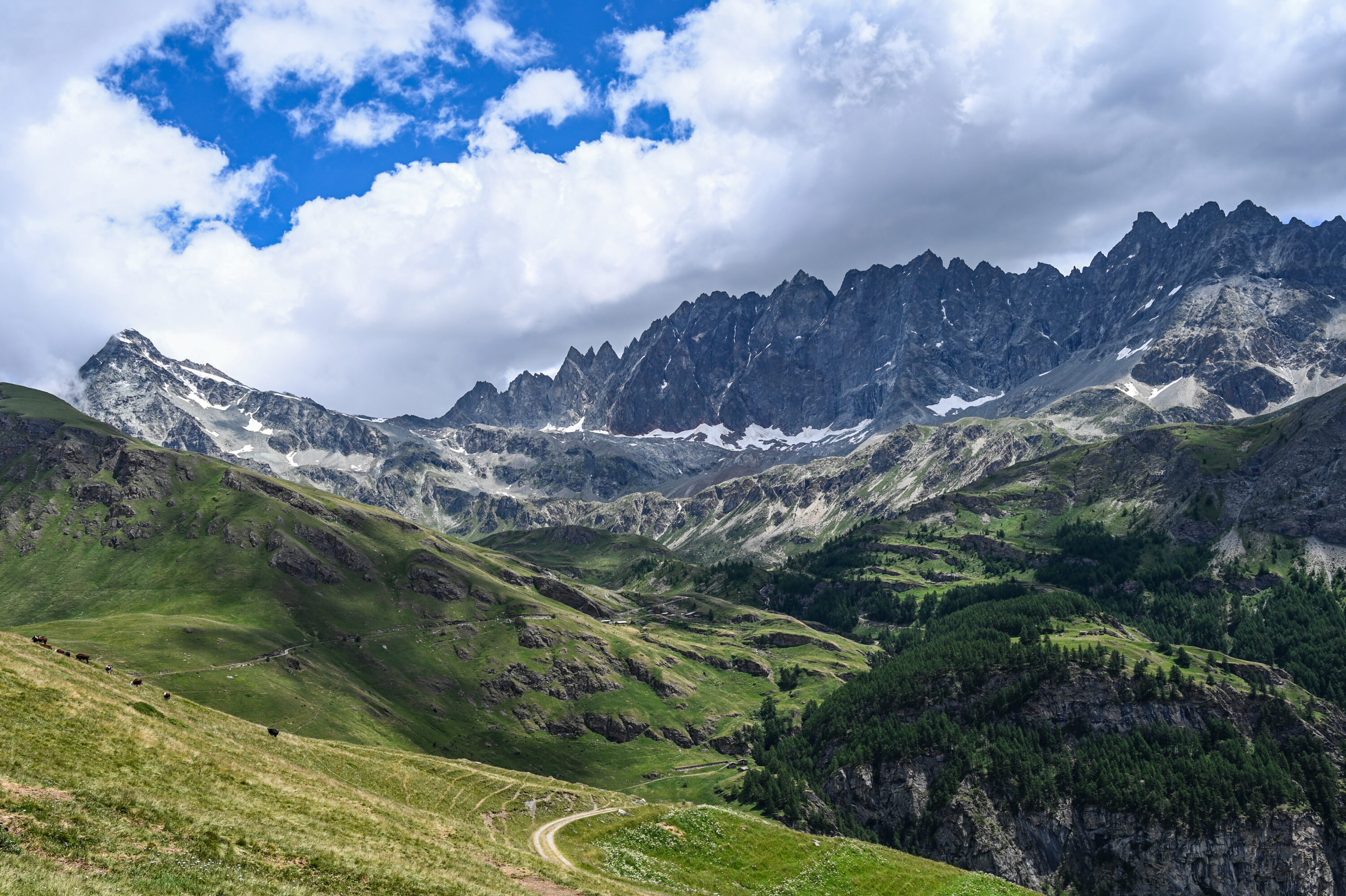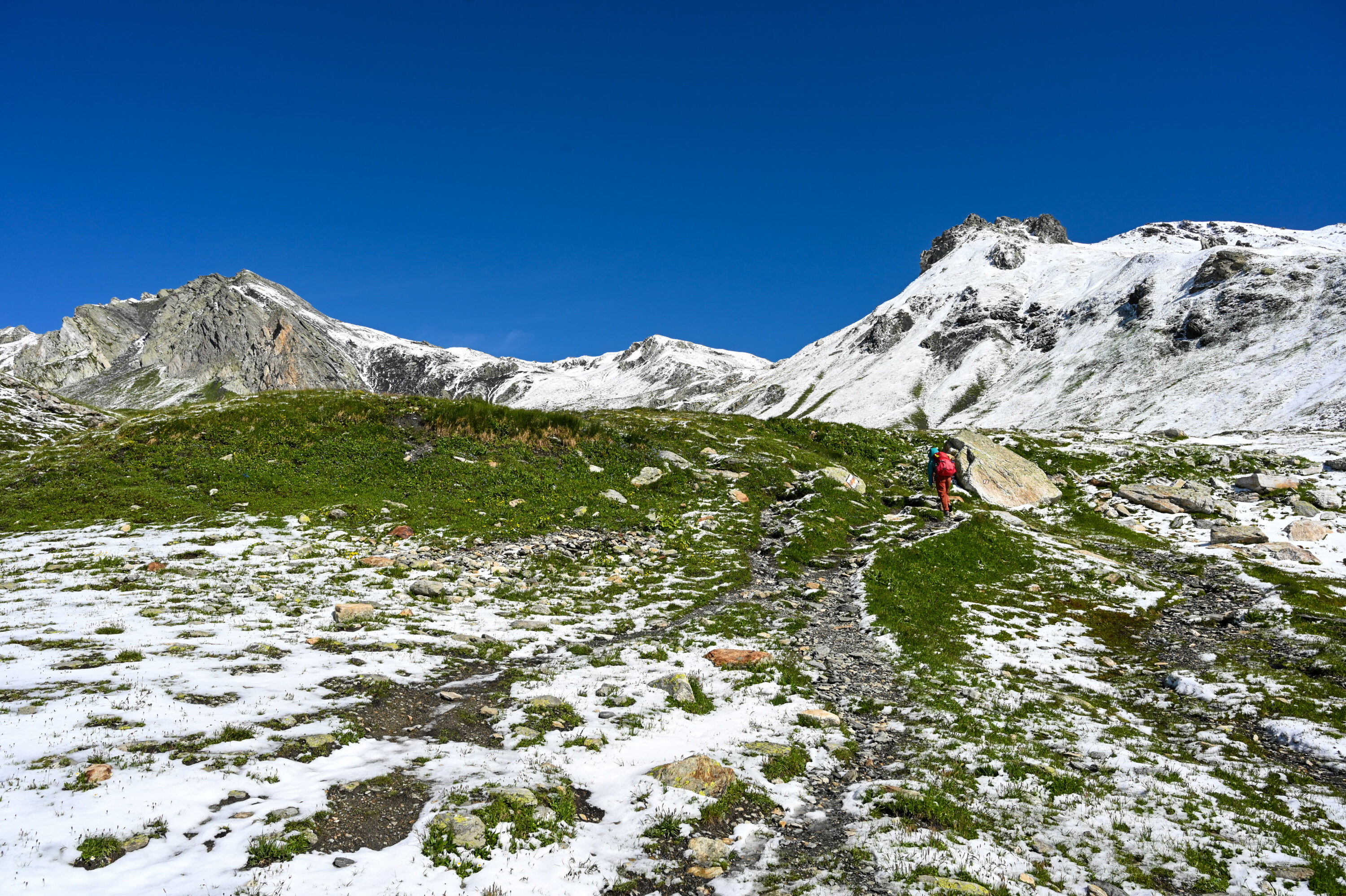 The ascent to Fenêtre du Durand was challenging, but it was here that we first felt our legs slip into that automatic walking rhythm, pulling us step by step. By then, the sun had come out, brightening the long stretch ahead, which mostly follows a relatively flat dirt road flanking the valley.