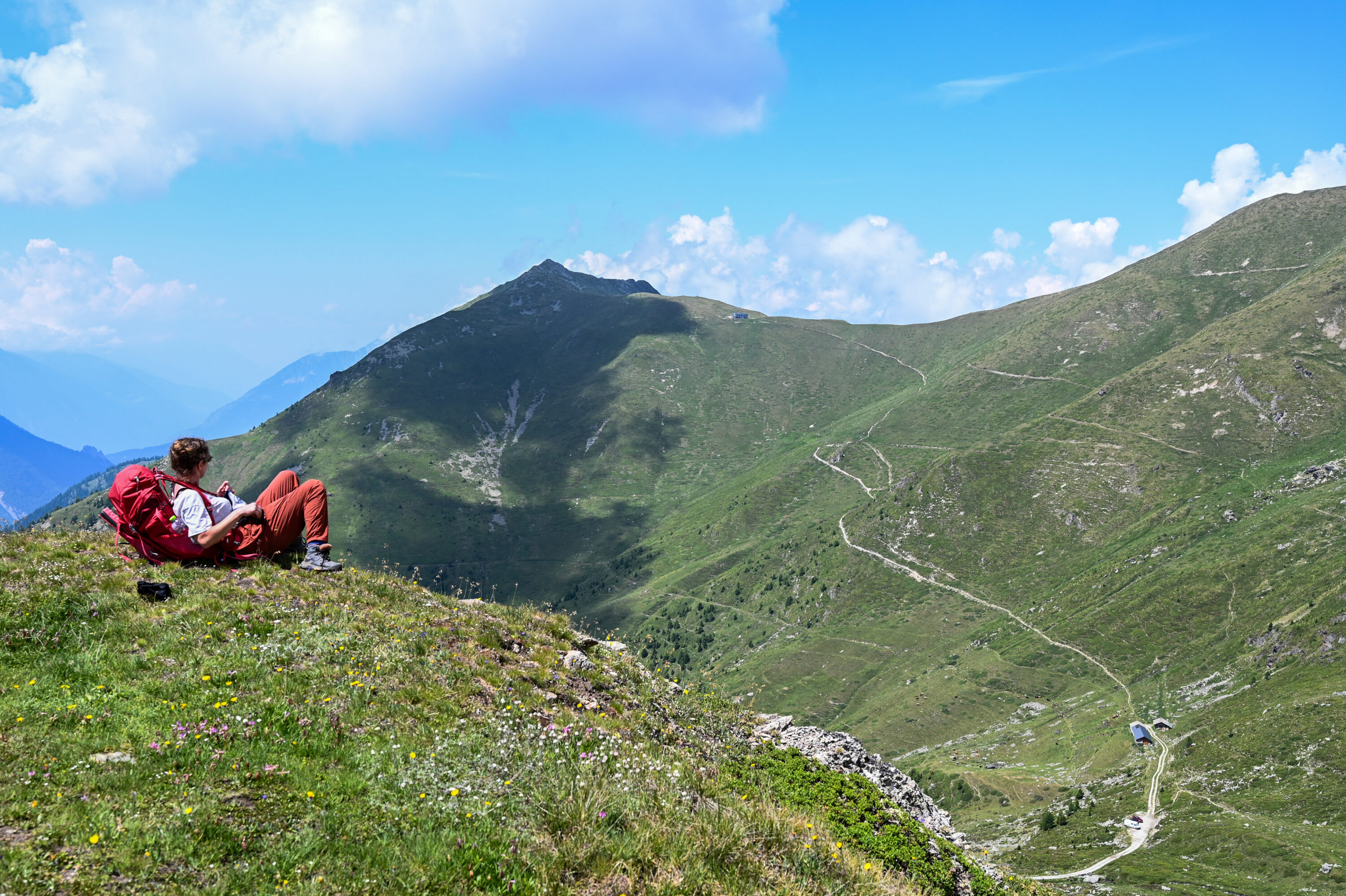The ascent toward Col de Mille is a perfect first day on the trail, following a wide, gently zigzagging path that later narrows into a well-maintained mountain trail. Along the way, we were surrounded by an incredible variety of wildflowers, making the hike especially beautiful.