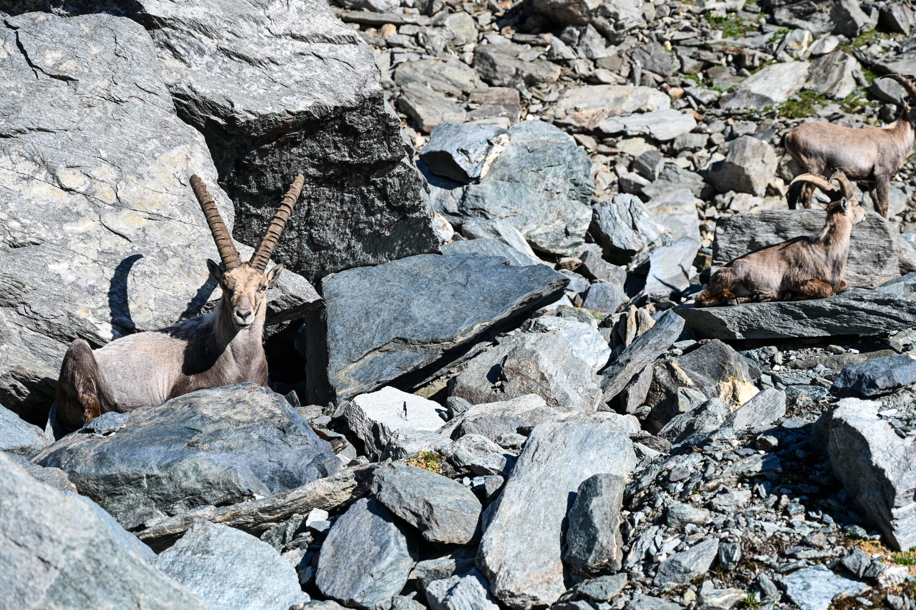 The ascent to Col des Otanes first thing in the morning was short but steep — and very challenging for me, probably thanks to a poor night’s sleep. We said goodbye to the British-Swedish couple we had connected with over the past few days. Just past Col des Otanes, right by the trail, a herd of about 20 ibexes was simply lounging — what a lucky encounter!