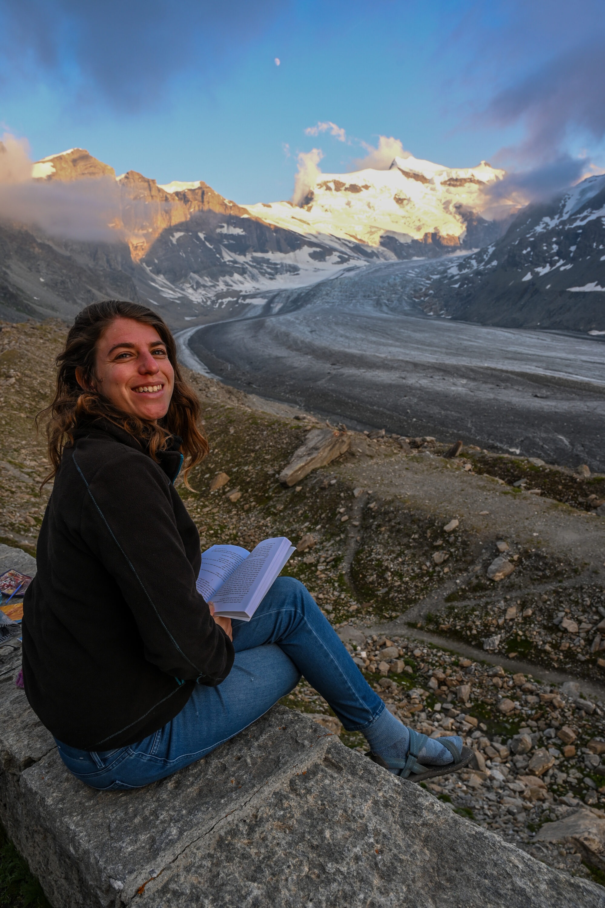 Later, our first drizzle and cloudy skies made the ascent to Col de Tsofeiret eventually easier. While enjoying a beer and gazing at the misty mountains, my eyes landed on a marmot about 30 metres away, quietly preparing for the night. I watched him for a while from afar, until Roni joined me and we shared a lively conversation about the day’s experiences.