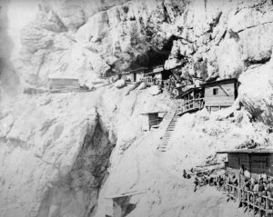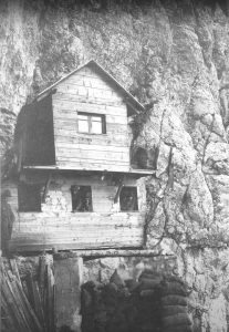 The Italians slowly progressed up the mountain and set up a small emplacement on the Martini ledge, with buildings both dug into into the mountain and hanging off the edge of the forbidding cliffs. This outpost included an artillery kitchen, barracks, a canteen, and a medical facility.