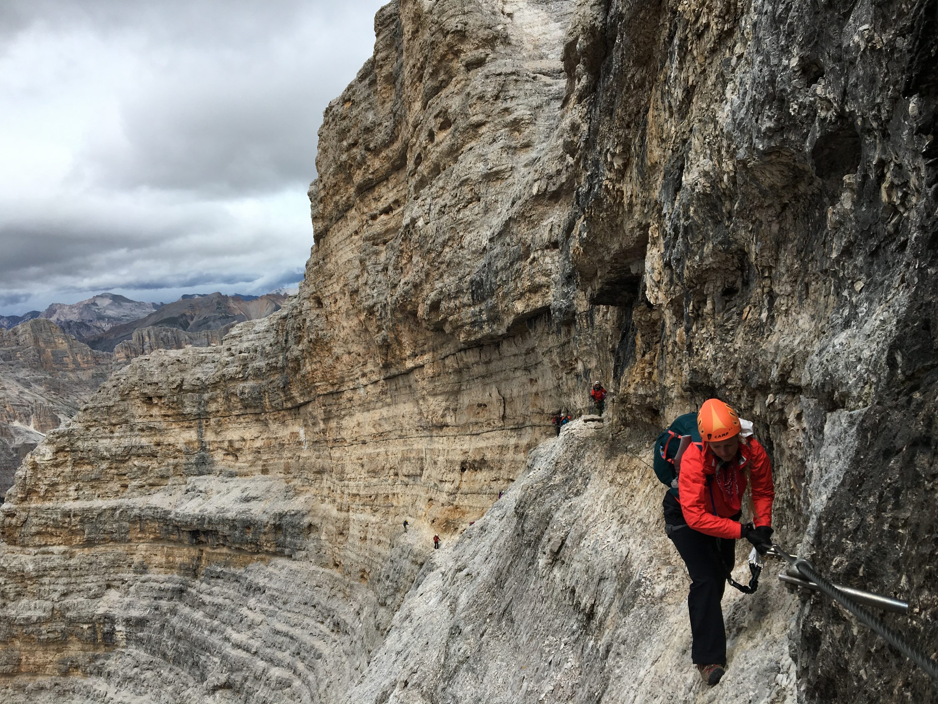 Via ferratas combine hiking and climbing along protected mountain routes equipped with fixed cables, ladders, and bridges. The Alps and Dolomites are home to some of the most spectacular via ferrata routes in the world, offering dramatic exposure and unforgettable mountain scenery. Our Brenta Dolomites Via Ferratas itineraries as well as our Dolomites Via Ferrata Max itineraries are include some of the most spectacular via ferratas the Alps have to offer. Alpenventures UNGUIDED designs self-guided via ferrata tours that allow experienced hikers and climbers to explore these routes independently while we manage the logistics. Our itineraries include detailed route information, carefully selected accommodations, and setup on a navigational app so you can focus on the adventure while traveling through some of the most iconic mountain landscapes in Europe.